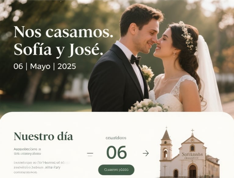 Crea una invitación con multiples posibilidades como: cuenta regresiva, agenda, galería de fotos, y enlaces específicos como a la mesa de regalos